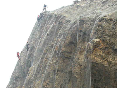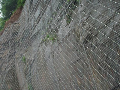 SNS邊坡防護網材質:鋼絲繩網、普通(tōng)鋼絲格栅(常稱鐵絲格栅)和(hé)TECCO高強度鋼絲格栅構造:前兩者通(tōng)過鋼絲繩錨杆和(hé)/或支撐繩固定方式,後者通(tōng)過鋼筋(可(kě)施加預應力)和(hé)/或鋼絲繩錨杆(有邊沿支撐繩時采用)、專用錨墊闆以及必要時的(de)邊沿支撐繩等固定方式。作(zuò)用原理上類似于噴錨和(hé)土(tǔ)釘牆等面層護坡體(tǐ)系,但因其柔性特征能(néng)使系統将局部集中(zhōng)荷載向四周均勻傳遞以充分(fēn)發揮整個系統的(de)防護能(néng)力,即局部受載,整體(tǐ)作(zuò)用,從而使系統能(néng)承受較大的(de)荷載并降低單根錨杆的(de)錨固力要求。